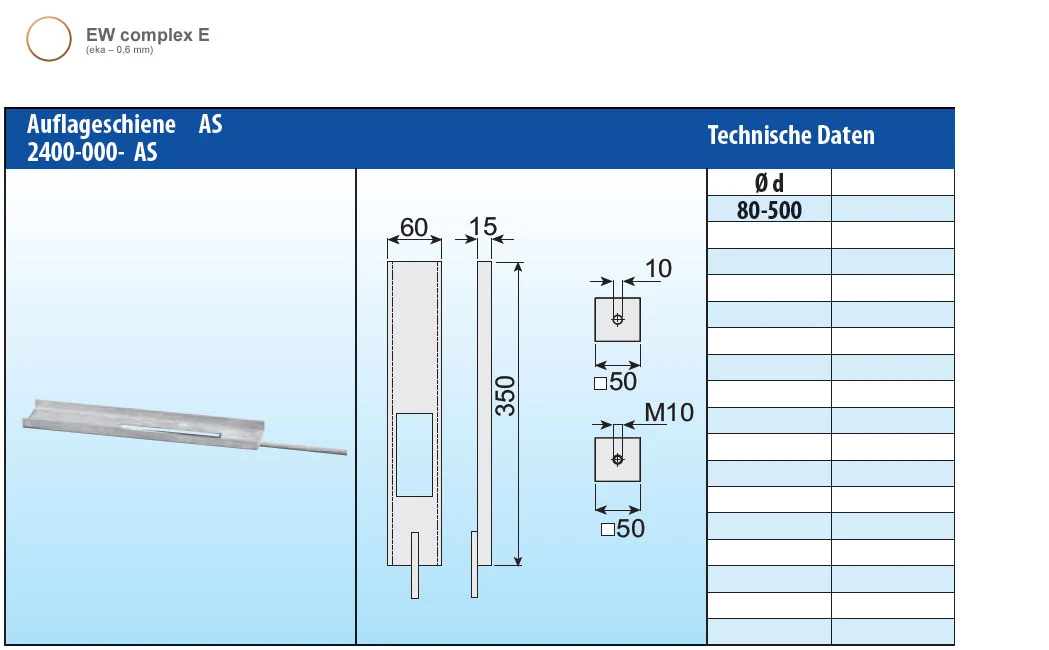 Die Auflageschiene ist für die Montage in Wände und Decken konzipiert. Sie verfügt über ein vorgearbeitetes Gewinde im Durchmesser von 10 mm.