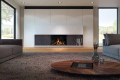 Die beiden oberen Brenner, bekannt als Dynamic Flame Burner, sind geschickt in den Holzscheiten versteckt und erzeugen ein äußerst realistisches Flammenbild. Dies verleiht dem Kamin eine besonders authentische Optik und schafft eine gemütliche Atmosphäre.
