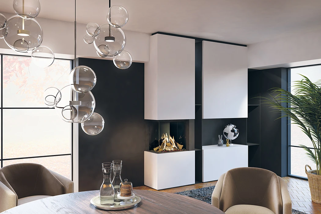 Dieser 2-seitige Gaskamin vereint die Vorteile eines traditionellen Kamins mit moderner Technologie und herausragendem Design. Mit extra hohen Scheiben ermöglicht er einen perfekten Blick auf das Flammenspiel, das jedem Raum eine einladende und warme Atmosphäre verleiht. Egal, ob Sie sich in Ihrem Wohnzimmer, Essbereich oder Schlafzimmer aufhalten, der Maestro Gaskamin schafft überall eine behagliche Umgebung.