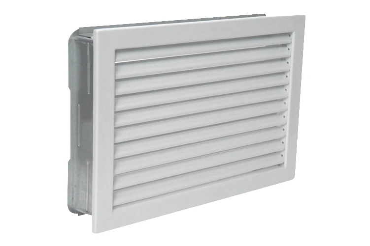 Lüftungsgitter aus Stahlblech zur Verbrennungsluftversorgung; einfache Montage durch praktischen Einbaurahmen.