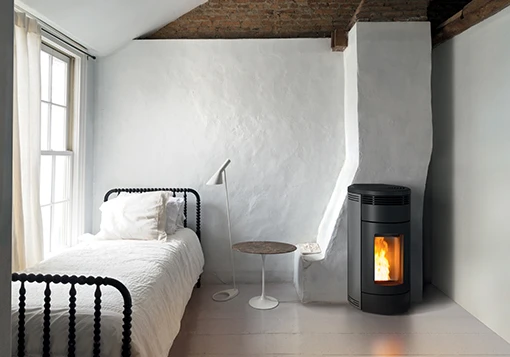 Eine gute und solide Wahl. Der runde Pelletofen mit MAESTRO Steuerung ist eine zuverlässige Lösung, damit Sie an kalten Tagen keine kalten Füße bekommen. Lieferbar in der Größe von 540 × 1007 × 550 mm spendet der Pelletofen angenehme Wärme.