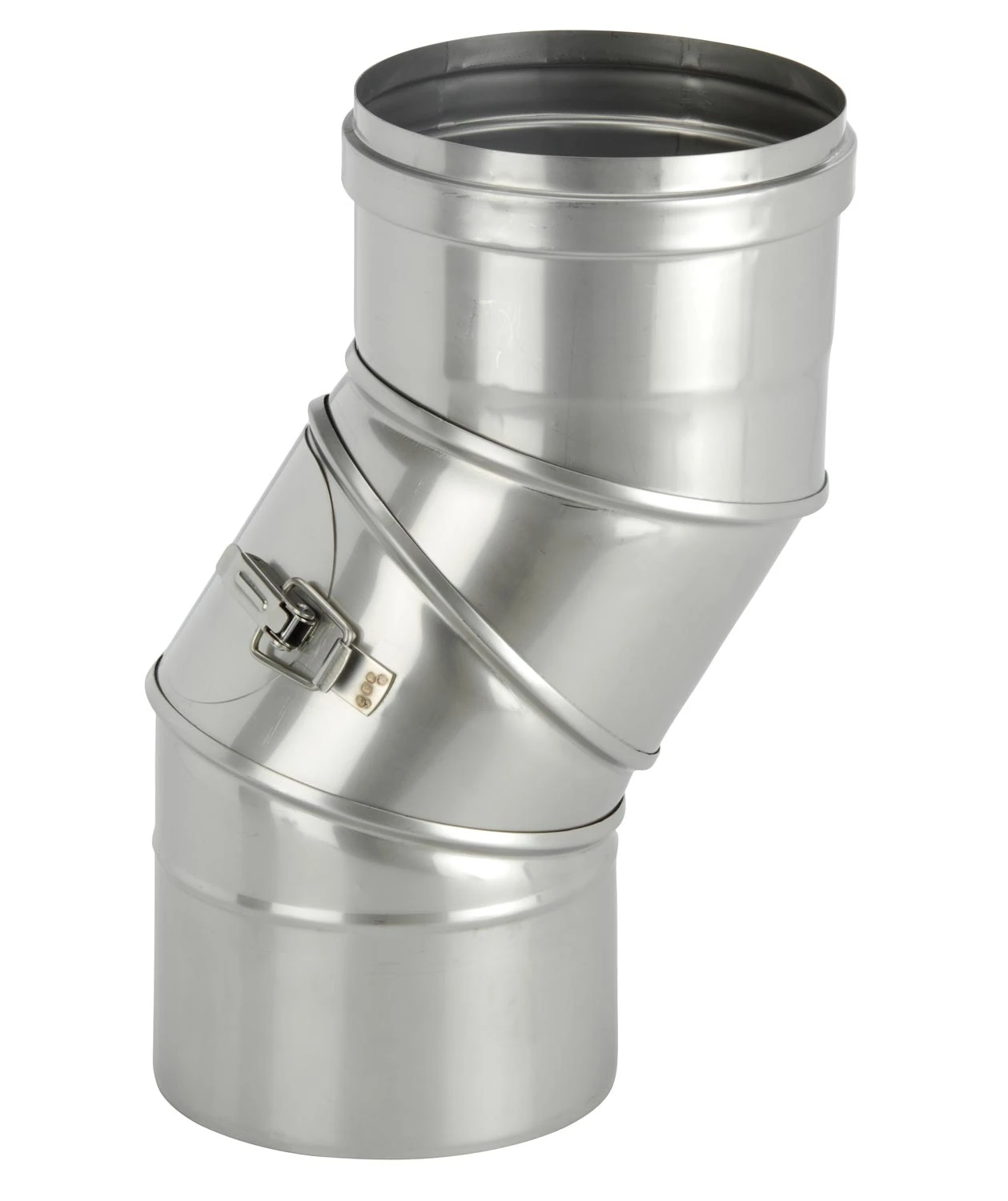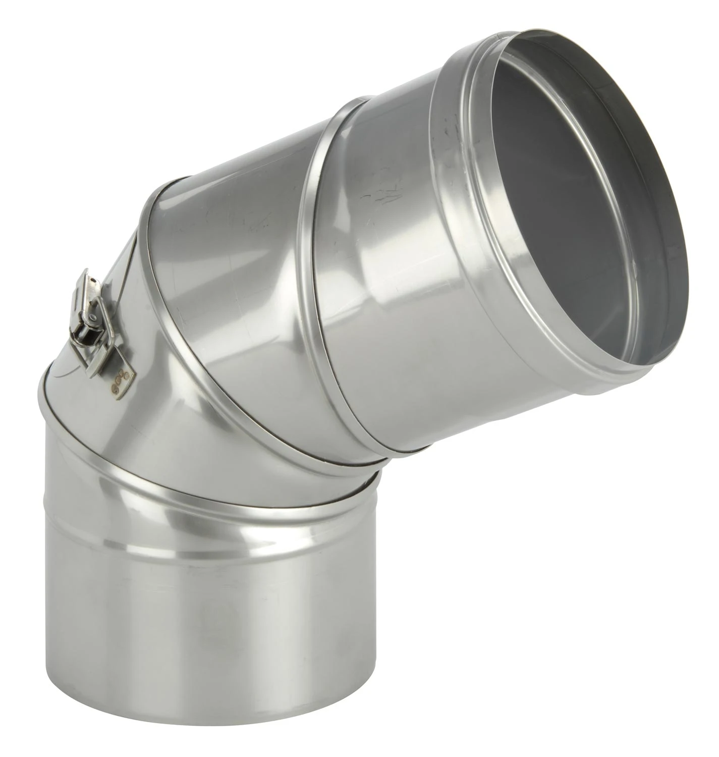 Einwandiger, flexibler Schornstein Winkel in wählbaren Querschnitten 113 – 400 mm mit Prüföffnung aus hochwertigen V4A Edelstahl in der Materialstärke: 0,6 mm (1,0 mm auf Anfrage) zum Einbau in Schornstein-Verbindungsleitungen.