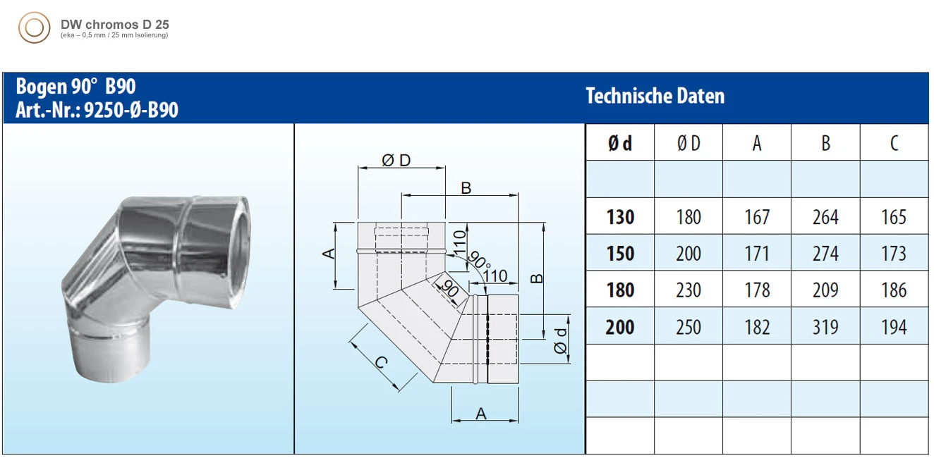 Schornstein Winkel 90 Grad / doppelwandig / eka chromos D 25