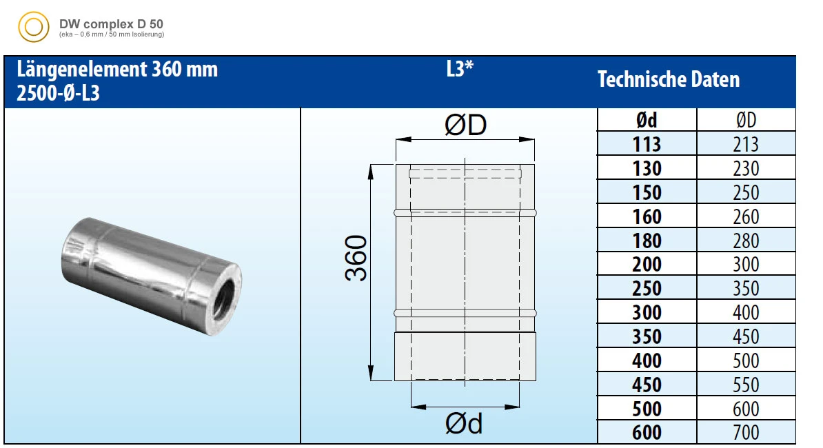 - bis 600 °C Abgastemperatur zugelassen