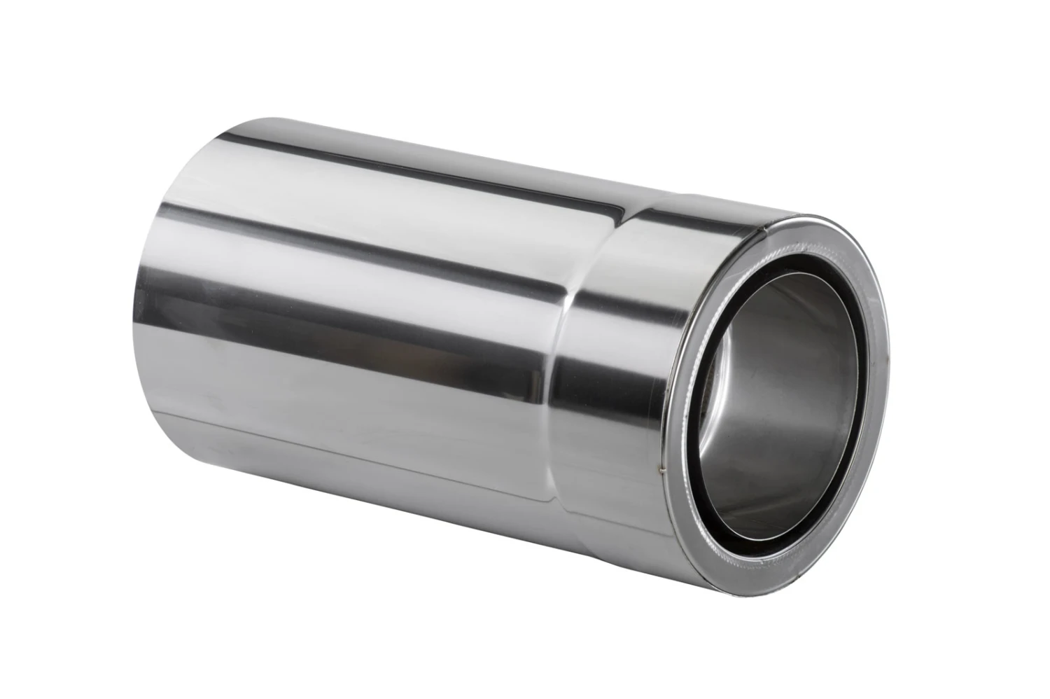 Das doppelwandige Schornsteinrohr aus erstklassigem V4A und V2A Edelstahl (Materialnummer: 1,4404 oder 1,4301) ist für Heizquellen für Holz, feste Brennstoffe, Pellets und weitere konzipiert und die optimale Lösung für einen an der Außenwand montierten Schornstein. Dank der überzeugenden mittleren Rauigkeit von 1,0 mm werden Rußablagerungen im Rohr auf ein Minimum reduziert.